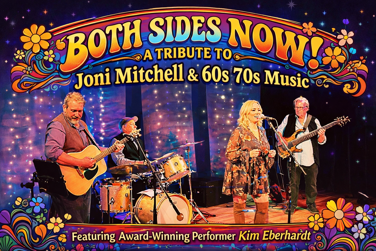 Both Sides Now: A Tribute to Joni Mitchell & the Music of the 60s and 70s is a beautifully crafted live concert experience that celebrates one of the most influential singer-songwriters of all time — while expanding into the unforgettable sound of a generation.